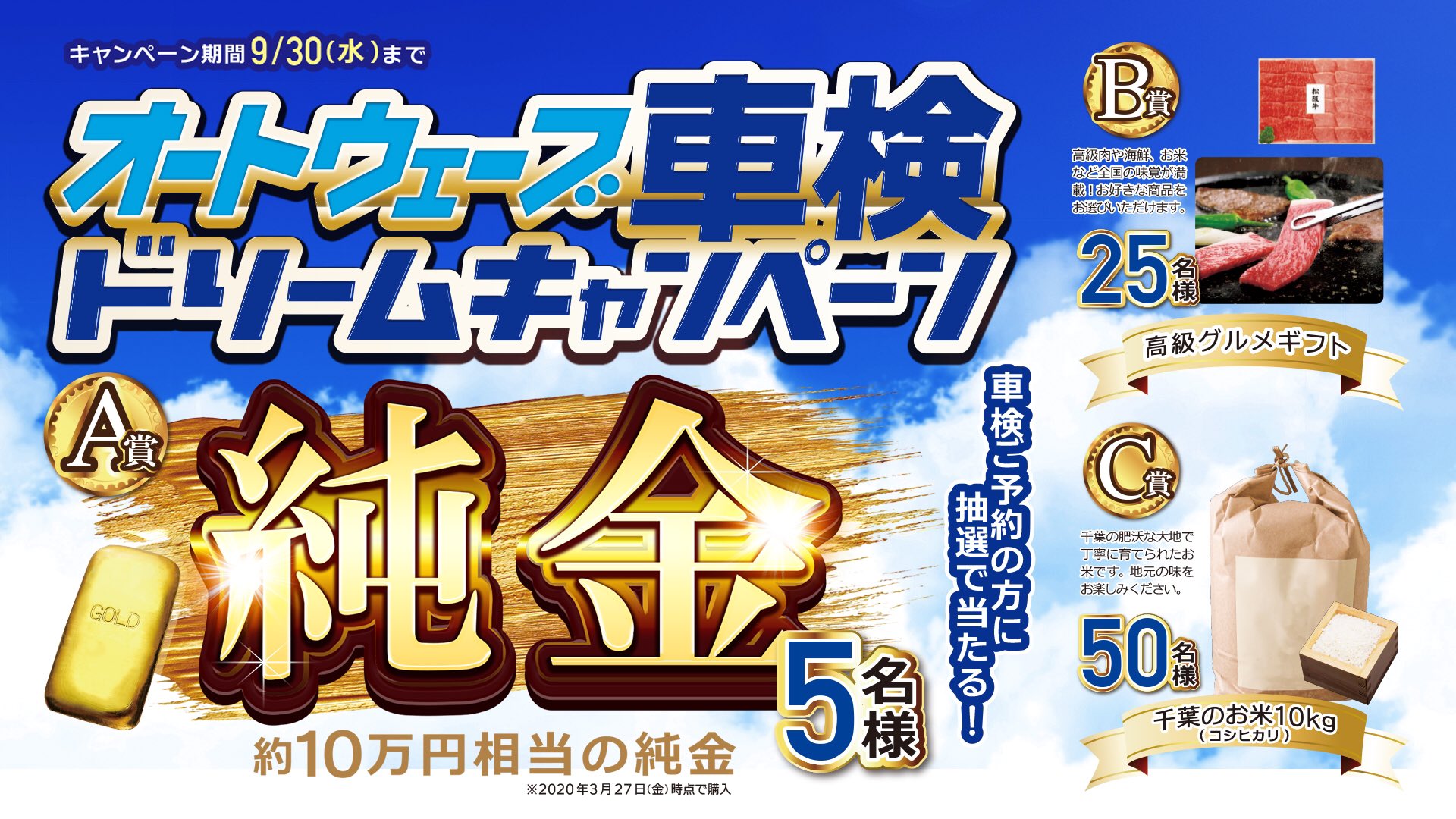 2020年7月1日から オートウェーブ車検ご予約で純金が当たるドリームキャンペーン キャンペーン 全店共通 車検とカー用品販売なら オートウェーブ 千葉県内8拠点