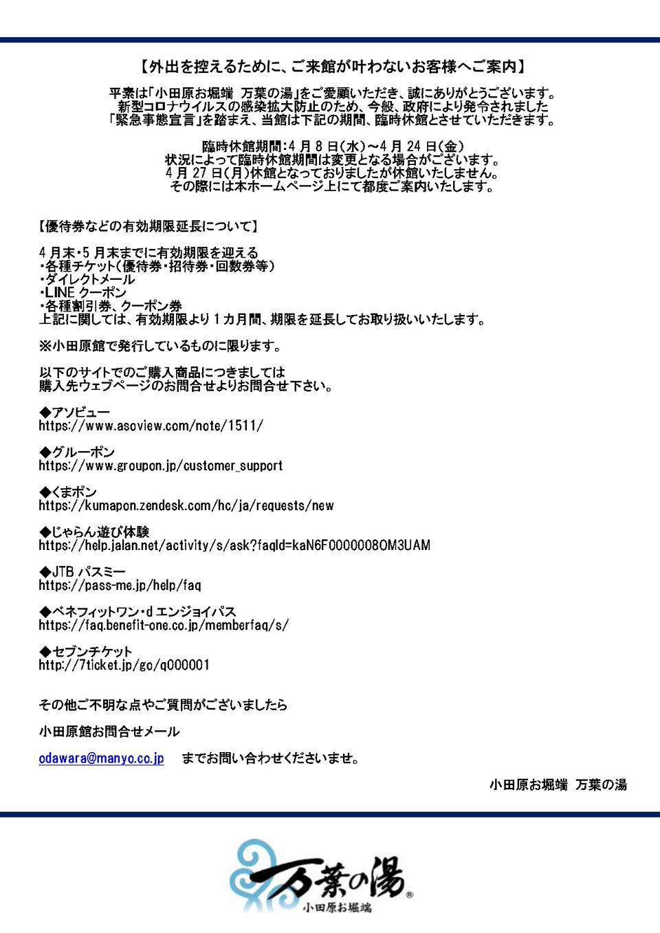 箱根湯本温泉 天成園 新型コロナウイルスの感染拡大防止 また今般発動されました 緊急事態宣言 を踏まえ臨時休館等が Facebook