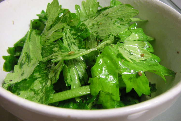 葉っぱが美味しい セロリの葉のごま油炒め レシピ 作り方 By ぽてまる太郎 クックパッド