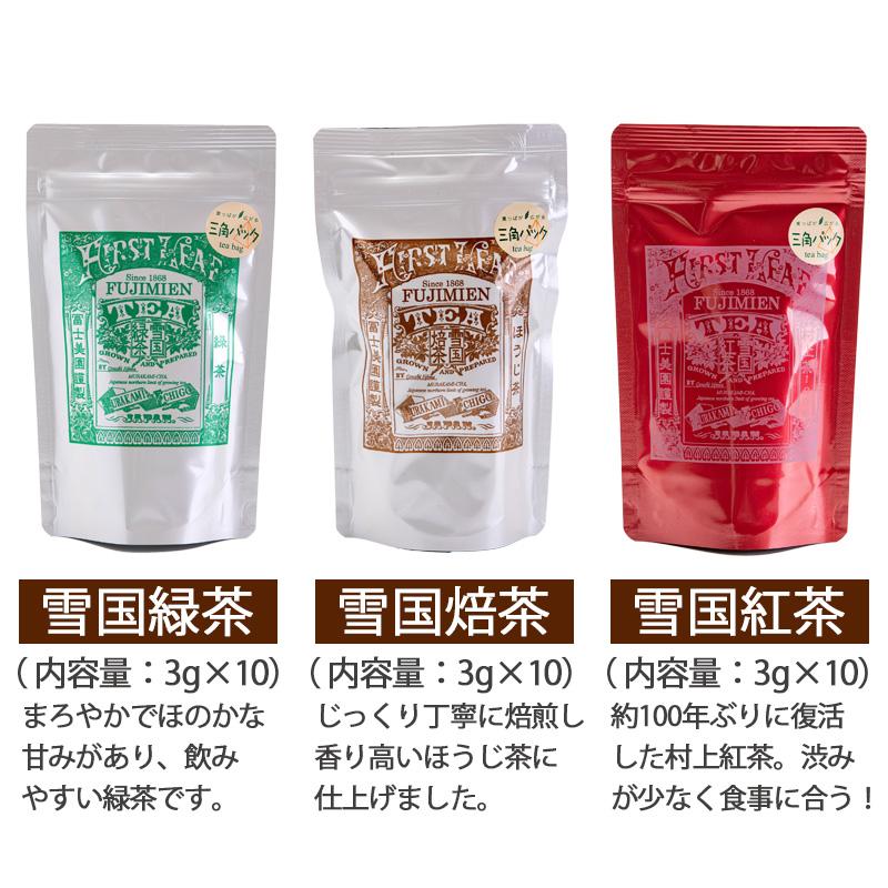 村上茶詰めあわせセット ティーバッグ 30パック 雪国緑茶 雪国紅茶 雪国焙茶 ほうじ茶 お茶 新潟 冨士美園 北限茶処 送料無料 ギフト お中元 99992153 新潟のお米専門店いなほんぽ 通販 Yahoo ショッピング