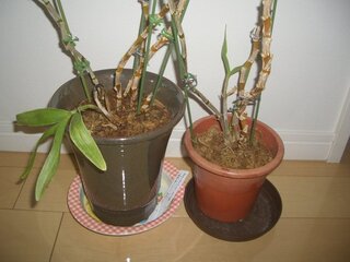 デンドロビュウム 植替 株分け約5ヵ月後に落葉の始まりです 蘭の楽しみ