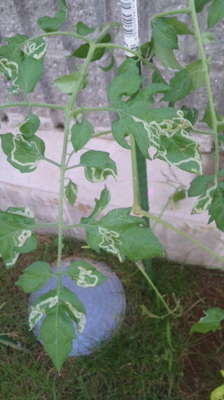 トマトや茄子の葉にこのような白い線が入ってきました なんかの病 Yahoo 知恵袋