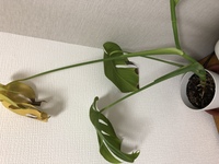 ヒメモンステラの葉が急に黄色になり枯れかけてる これは 暖かい園芸売り場から 寒い屋外で管理へ そして急に部屋へ取り込む という気温差が原因ですね