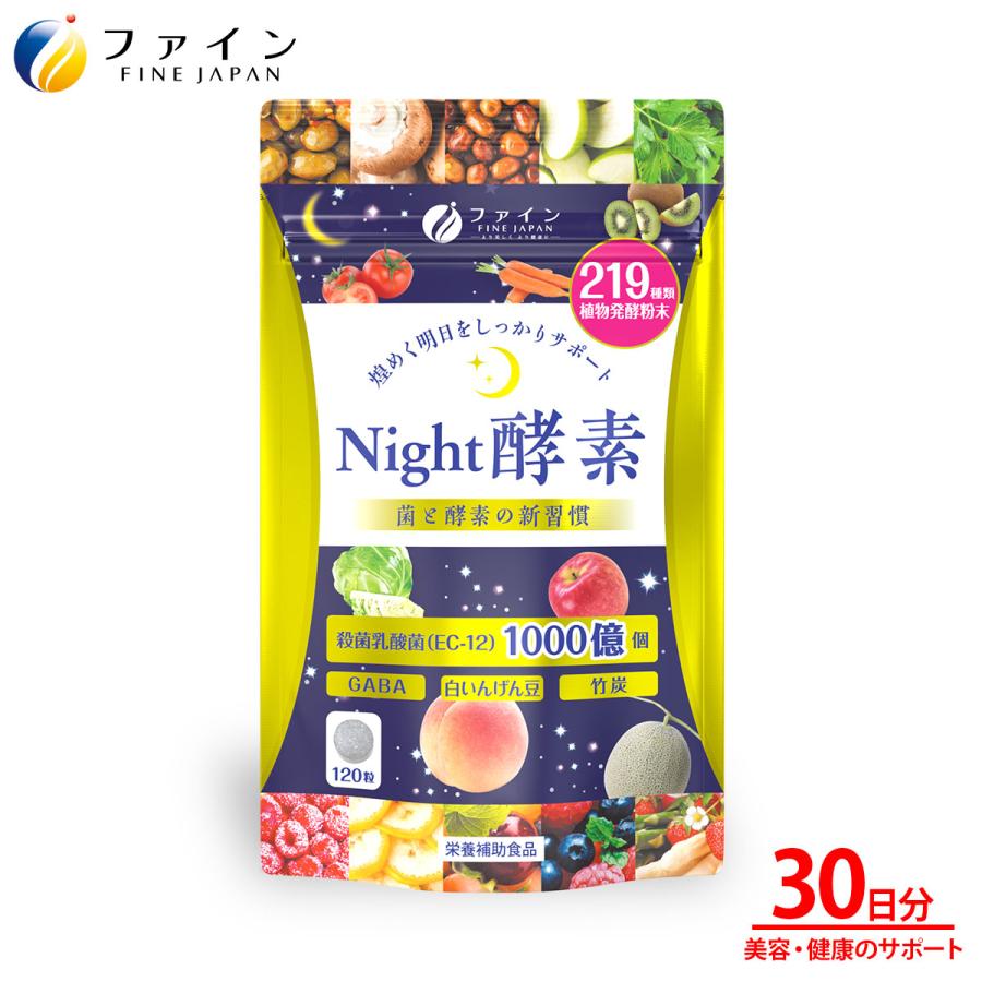 ナイト酵素 30日分 120粒入り ラフマ 葉 抽出物 ギャバ Gaba 食物繊維 酵素 酵母 乳酸菌 配合 ダイエット ファイン A 400220 健康食品のファイン 公式 Yahoo 店 通販 Yahoo ショッピング