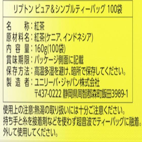 リプトン ピュア シンプルティーバッグ 100袋 紅茶の専門家リプトン Lipton