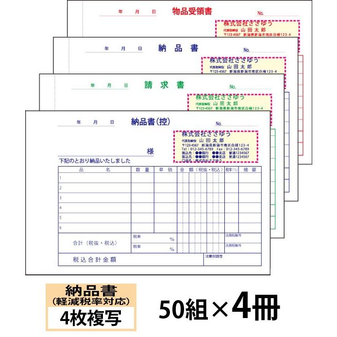 オリジナル名入れ伝票印刷 軽減税率対応納品書 4枚複写 請求書 受領書付きタイプ 50組 4冊 Den 012 004 選べる4書体簡単伝票作成 送料無料 Den 012 004 ささゆうyahoo店 通販 Yahoo ショッピング