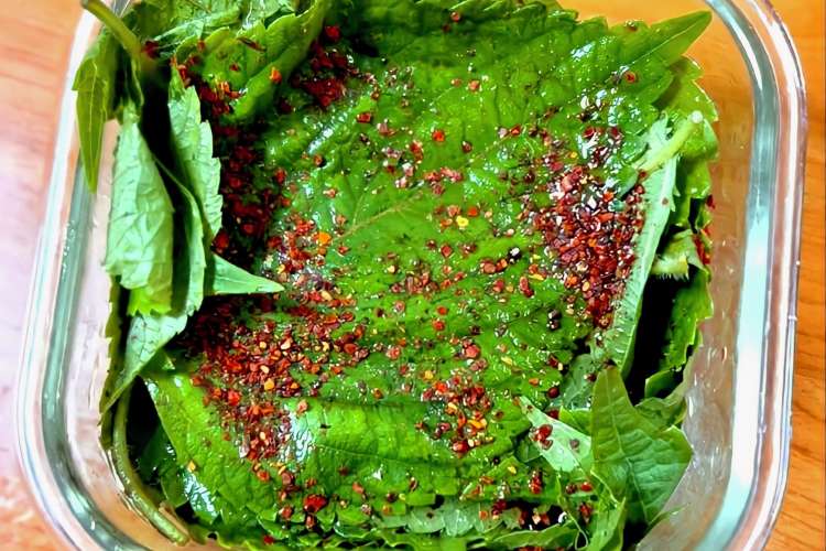 大葉とエゴマの葉のピリ辛韓国風漬物 レシピ 作り方 By Miria クックパッド