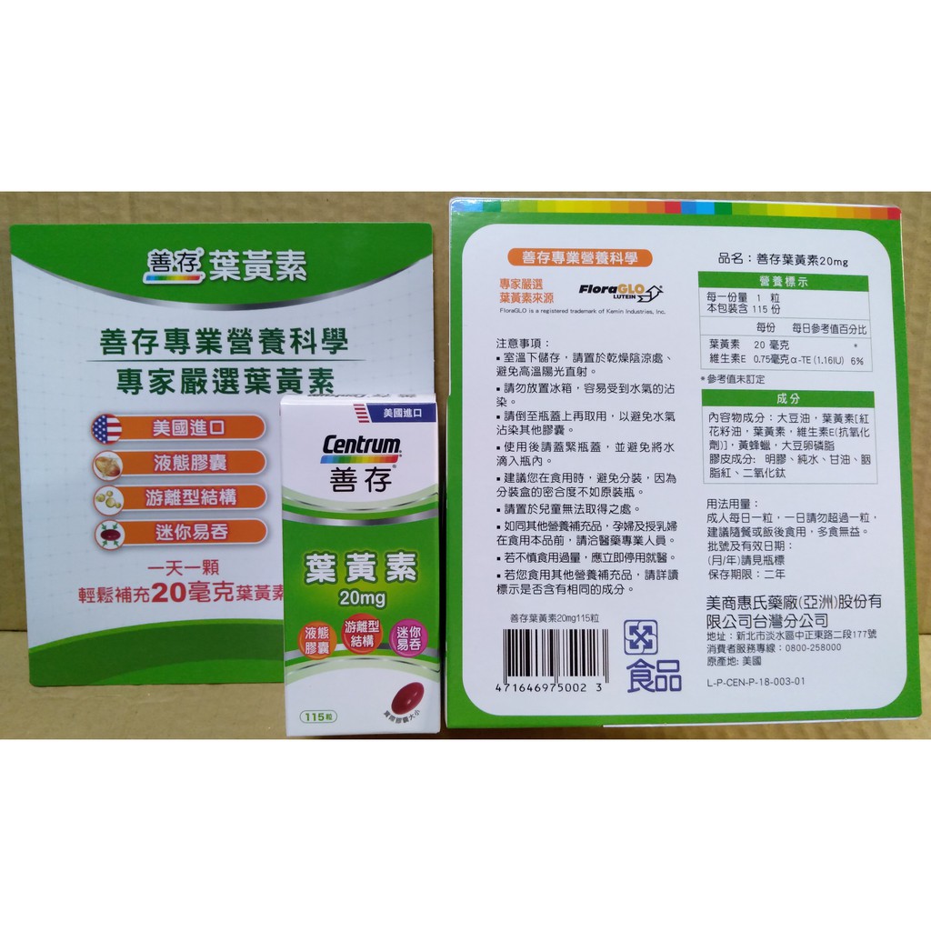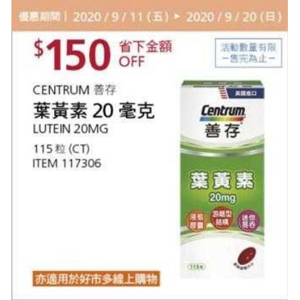 好代go 代購 善存葉黃素115粒 20mg 游離型葉黃素好市多代購centrum Lutein Costco 蝦皮購物